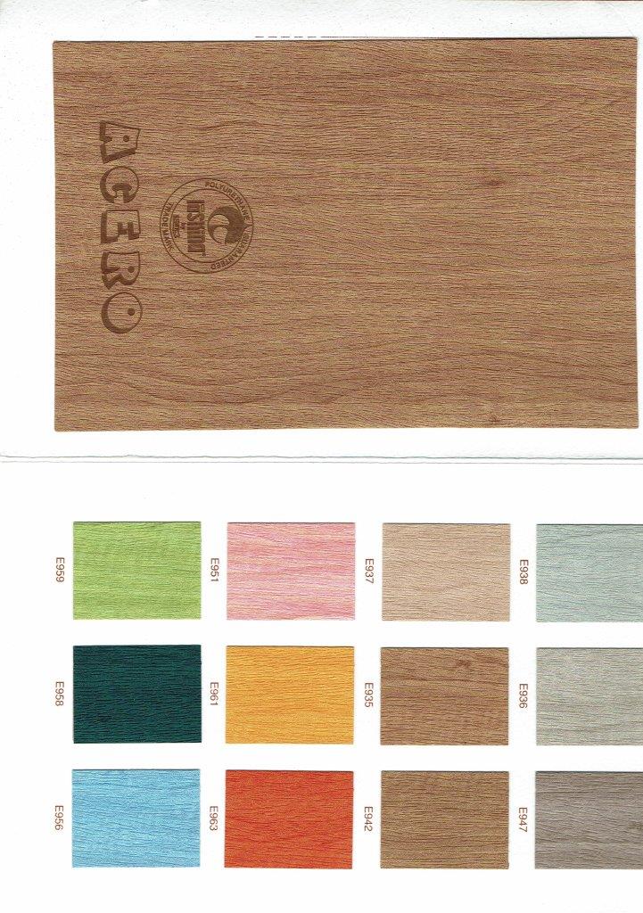 PU Holzimitat Rollen: Breite 140 cm, Länge: 60 m Acero Acero Farben 1 Acero Farben 2 Acero Rückseite Rovere Rovere Farben Zebrano Zebrano Farben